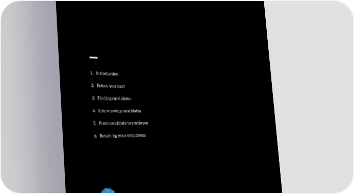 _ 1. Introduction 2. Before you start 3. Finding candidates 4. Interviewing candidates 5. From candidate to employee 6. Retaining your employees i. Contributors ii. Appendix