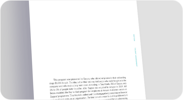 PAY TO QUIT NONO TION TTION T ALENT AALENT A SS SESSES SMENTSMENT This program was pioneered by Zappos, who offered employees in their onboarding stage $3,000 to quit. The idea is that they only wanted people who really bought in to the company and who took a long term view. According to Tony Hsieh, CEO of Zappos, only 2% to 3% of people take the offer. After Zappos was acquired by Amazon in 2009, Jeff Bezos modeled the Pay to Quit program for employees at Amazon fulfilment centers on Zappos’ programme. They key is to understand that disengaged employees impose financial and emotional costs on an organisation. For founders who want to do things differently it might be worth considering incorporating a pay to quit programme either on a decreasing, continuous basis like at Amazon, or as part of a trial period like at Zappos. Why focus on engagement? Gallup’s research found that, in 2011-2012, publicly traded companies with 9.3 or more engaged employees for every disengaged employee had 147 percent higher earnings per share than their competitors. Meanwhile, companies with little engagement - 2.6 engaged employees for every disengaged employee - had 2 percent less earnings per share than competitors. This will be particularly true for SaaS companies where people are the real product. 105105